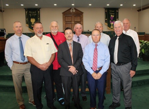 Pictured with the Pastor are the deacons named from left to right; Tally Gant, Darrin Rogers, David Mecimore, Keith Meadows, Joey Price, Keith Orren, Rick Brown, and Scotty Shook.