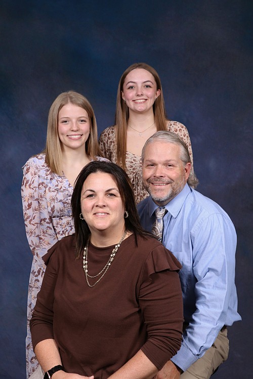 Joey Price and his wife, Anita. Pictured with them are their two children, Chesney and Jaron. Joey has been faithfully serving as a deacon at Little River since 2022!